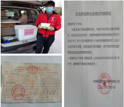 公司积极履行社会责任,向芜湖市红十字会定向捐款10万元,用于芜湖市新型肺炎防疫抗疫工作,为疫情的早日结束贡献自己的力量。