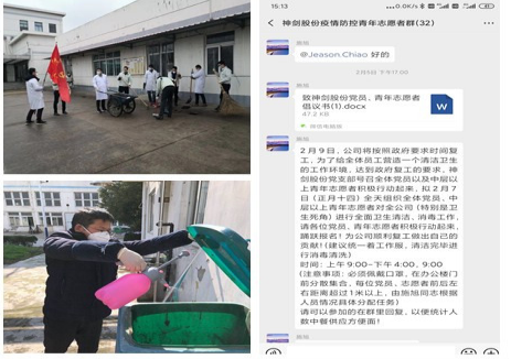 公司党员和青年志愿者积极响应公司的号召,积极报名参加志愿服务活动,对公司进行全面的卫生清洁和消毒工作,为公司顺利复工奠定了良好的基础。